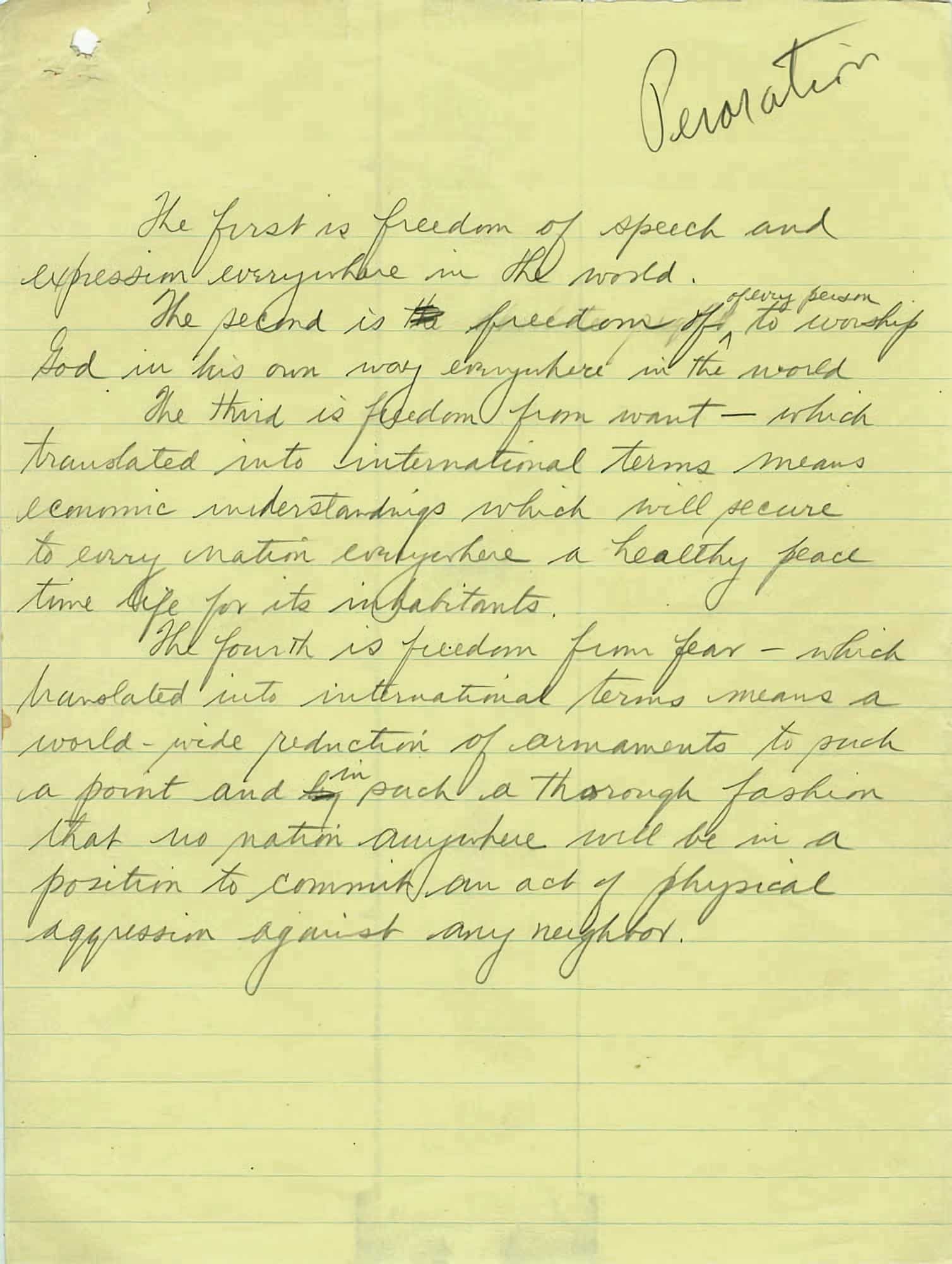 “In the future days, which we seek to make secure, we look forward to a world founded upon four essential human freedoms.